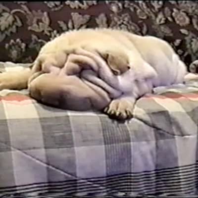 Cute sharpai dog snores while sleeping. . Big humming / buzzing in bg.