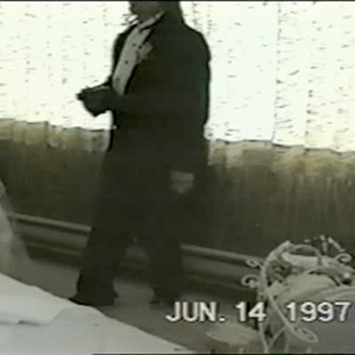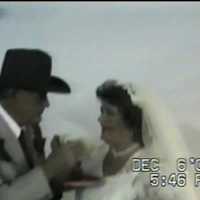 Bride groom smash cake in each other's faces, they knock over the table with the cake on it the whole cake falls onto the floor. Groom has a mullet. Wedding reception.