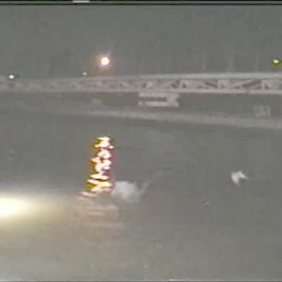 Fish jump all around a pontoon boat as it moves through the water at night. 1 fish jumps right into the camera lens. BAD AUDIO.