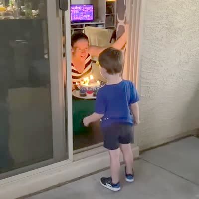 A family sings "Happy Birthday" to a young boy in the kitchen and his younger brother blows on his candles before he does. But the younger brother does not blow hard enough, so it takes a while to do it. The camera turns to reveal the younger brother.