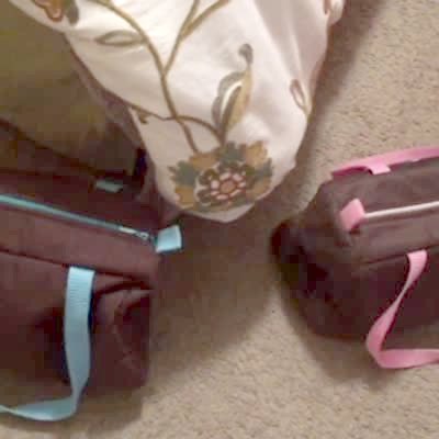 Two dogs in pet carriers dark and jump at each other, making it appear as though two bags are fighting indoors.