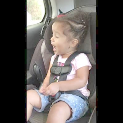 Little girl in the back of the car with tot sister. little girl says she wants to drive. Man driving says "if i let you drive who is gonna work the pedals?" there is a quiet moment. then the tot girl in her carseat begins to raise her hand. She says "me" ever so cute.