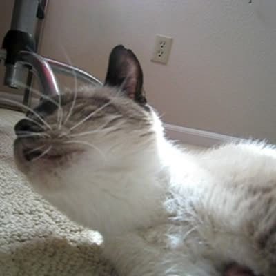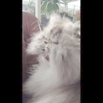 "Purr-Fect" Cat goes crazy. Fat cat makes a very weird/funny/strange noise. Snorts and licks its mouth.