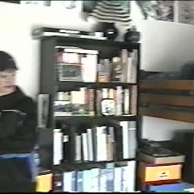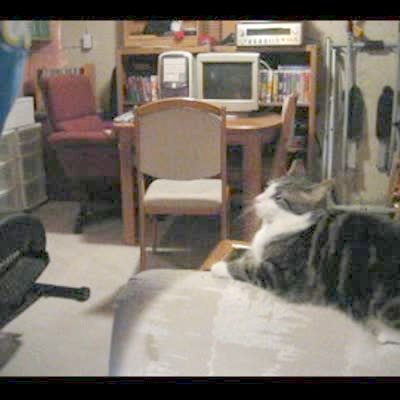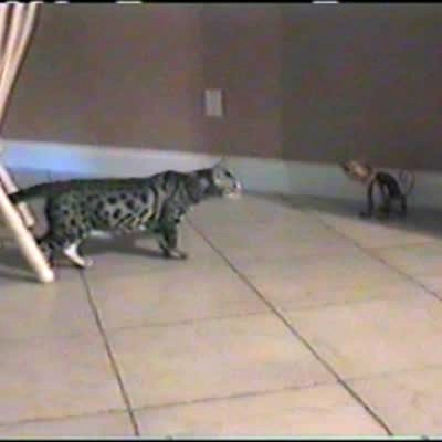 An adult man asks his car if its favorite movie is The Exorcist and the cats eyes go wide and he makes a weird noise with his tongue indoors.
