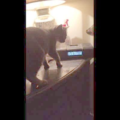 Teen boy sings a song and his cat meows and hisses at him. At the end of the song the boy takes his hat off and the cat claws at it and takes it from teen.