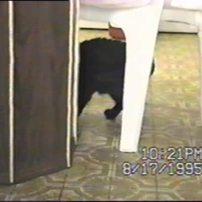 A dog looks under a pillow hearing kitten noises. The man behind the camera reveals a cell phone under the pillow with a cat meow ringtone.
