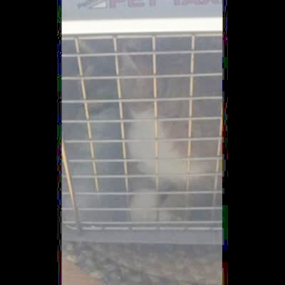 A cat in a pet taxi cage is making weird noises. Sounds like she's saying "not going."