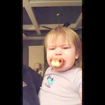 "Beaver Teeth Baby" A baby cries with a buck-teeth pacifier but her teeth chatter, causing the buck-teeth to wiggle up and down as she cries.