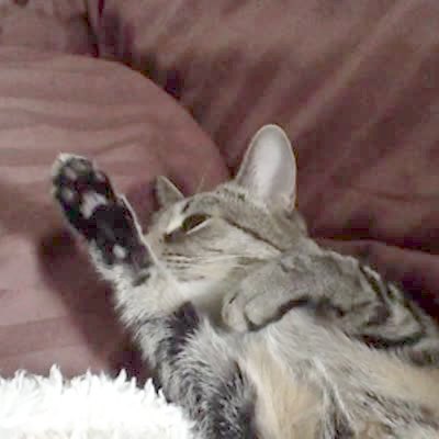 A striped cat reacts whenever it hears the sound of a nail clipper.