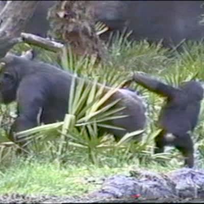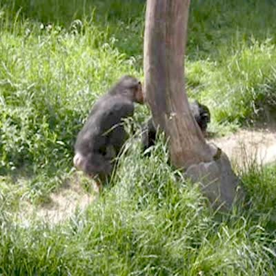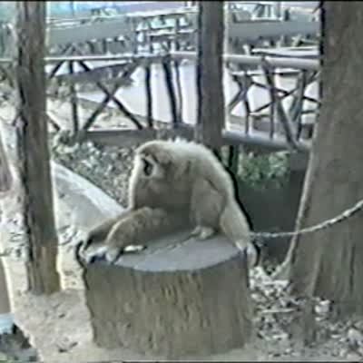 Monkey at the zoo steals another monkey's blanket & runs away - does it twice. Sibling rivalry. Chimps.