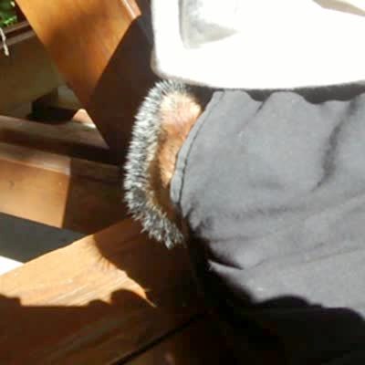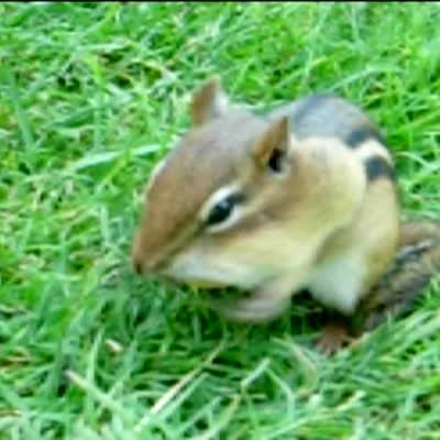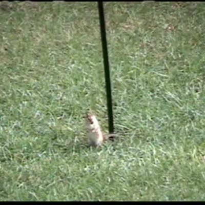 Chipmunk attacks dog. Jumps at him while dog is sniffing him.