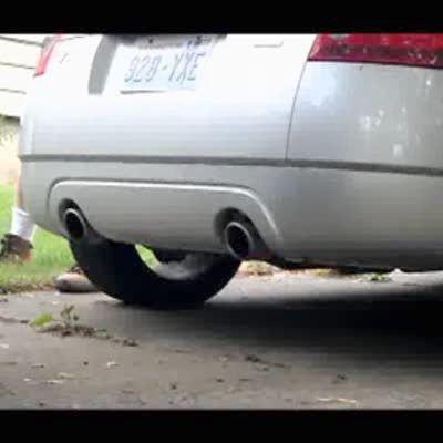 Man starts the car engine up in the driveway to scare a chipmunk that crawled into the exhaust pipe. The chipmunk shoots out.