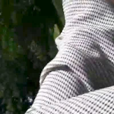 A teen girl whines while a Chipmunk crawls on her back outdoors, then screams when it climbs up her shorts.