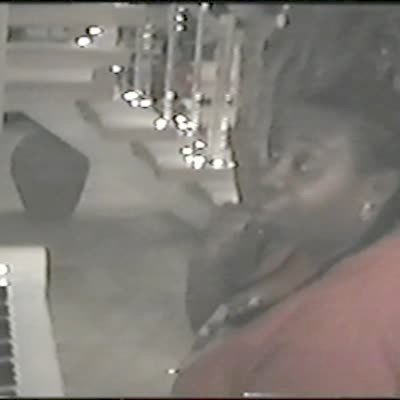Woman sings "Silent Night" very badly. Woman playing piano makes a funny face & does throat slitting movement to suggest woman should stop. Christmas songs.