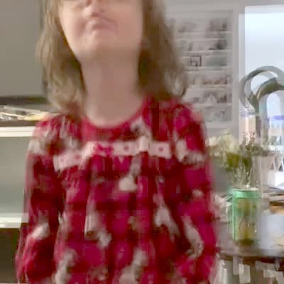 Young girl makes funny faces when asked what her favorite Christmas song is and when she messes up singing it