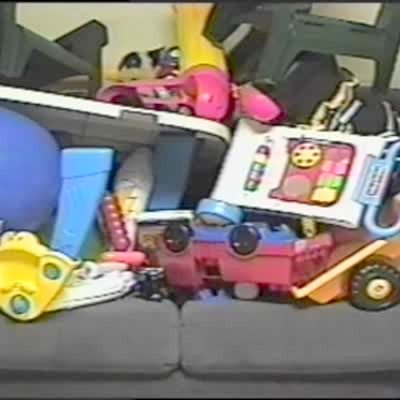 "Beanbag Blowout" - A woman films the aftermath of her two sons playing with the insides of a bean bag chair. The two boys blame their tot brother for making the mess and say they will clean it up. Styrofoam balls are everywhere.