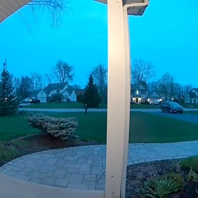 A young boy hears his father howl as he takes out the trash, and he runs back into the house. Security footage.