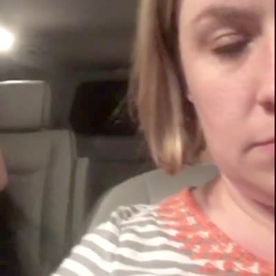 A young girl starts a vlog in the car with a young boy. A man wearing a horror clown Halloween mask pops out of the backseat and screams to scare them.