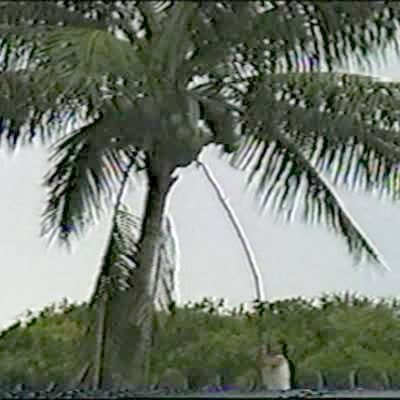 Coconut Head. While trying to knock a coconut off a tree, it slides down a pole and hits a man.