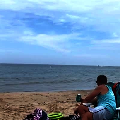 A woman walks on a beach and reaches for a bucket on the ground and gets scared when she sees a buried young boy's head under the bucket.
