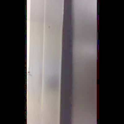 A man stands on his front porch with the door open. While he stands there, a groundhog comes from around the corner and runs into the house. Security footage.