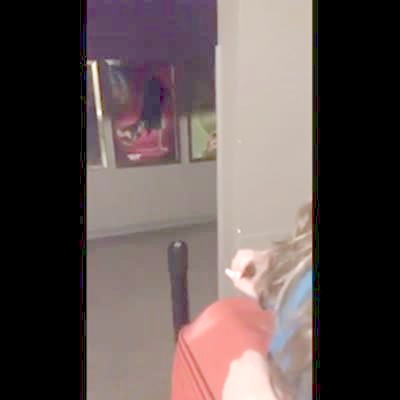 Teen girl rides hoverboard directly into the corner of a wall. Short tail.
