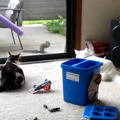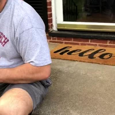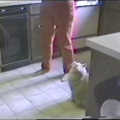 Woman gives cat a bowl of oatmeal, cat screeches/gags at it. (Cough up a hair ball)