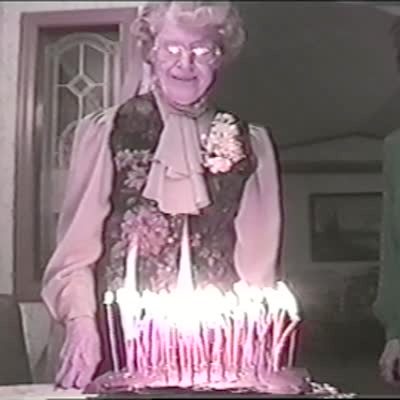 90 candles on cake ignites into huge fire, then hair catches fire -- coughing and laughing