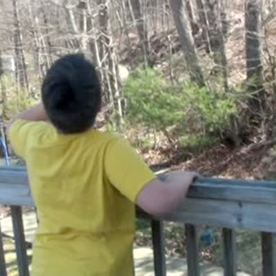 Tot boy is playing with his dad before bedtime. Boy starts coughing & suddenly vomits all over dad. Dad screams & boy laughs. Dad turns to camera & has brown puke all over him. Throw up. Gross.