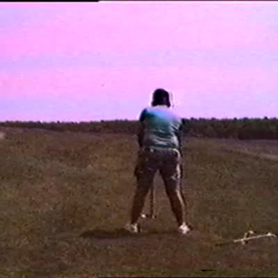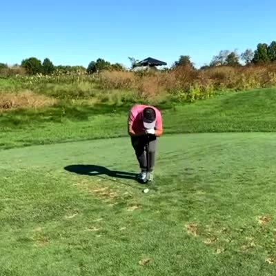 A man rolls around on the grass at a golf course after a ball backfires in to his groin as he tries to shoot it out of a slingshot.