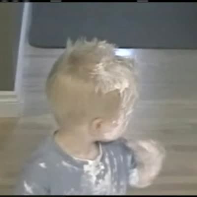 "Honey, I Found the Kid" A woman walks around the house and explains that she had to move all the stools and chairs so that her young son wouldn't climb onto the counter. She then shows that the boy moved a table to get onto the counter and covered himself in honey.
