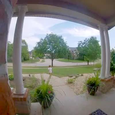 A young girl runs out onto a porch, waves her arms around, and yells "ice cream," but the ice cream truck just drives past her. She says "that's so mean." Security footage.