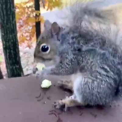 A squirrel jumps on the woman behind the camera. She screams, then she picks it up by its body and calls for her husband in a yard. POV.