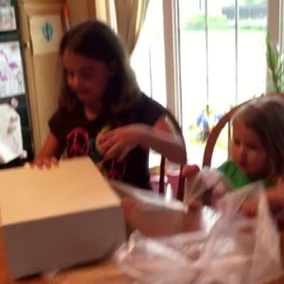 A young girl and her tot sister open the box for a gender reveal of their new sibling, but are more excited that the box contains cupcakes.