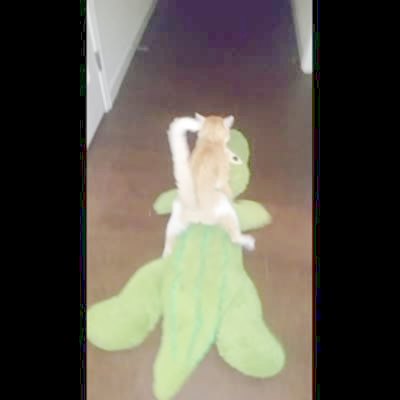A goat wears bunny ears, paws, nose and googly-eyes. Music rights not cleared.