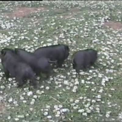 4 baby pigs wiggle their butts incessantly (11-113, 1324M)