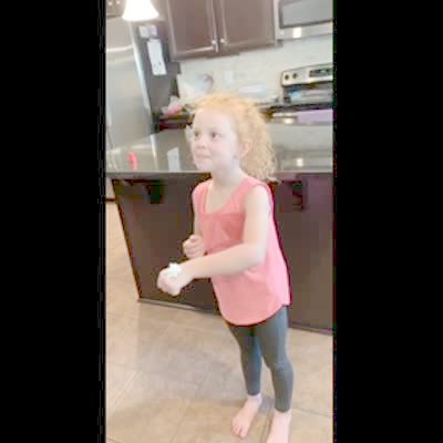 A young girl has makeup all over her face. A woman asks what she did. She says she has a pirate ship on her head. Then she does a cute "arrrr" like a pirate.