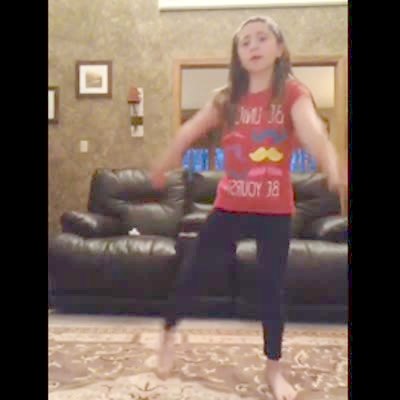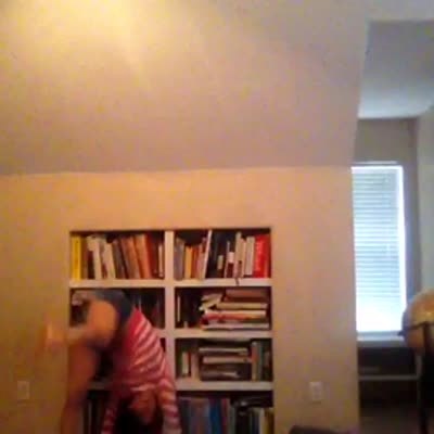 Two young girls dance on a couch. When they hug at the end they fall off while in each other's arms. Music rights not cleared.