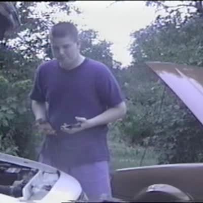 Boy accidentally shocks himself when demonstrating how to jump-start car.