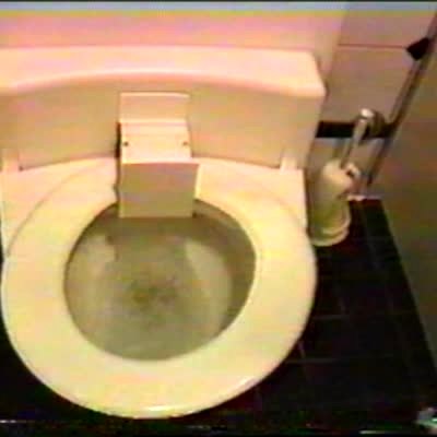 A woman demonstrates how to uses a bidet in a bathroom and turns a valve causing the water to spray her in the face.