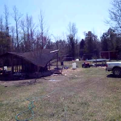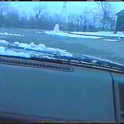 Mishap: A truck pulls down an old barn. It pulls down one piece which flies off and hits the truck.