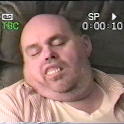 Man's dentures fall out while he sleeps in recliner.