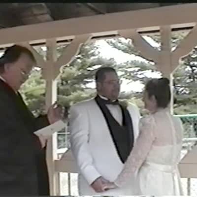 Groom removes fake teeth before kissing the bride.