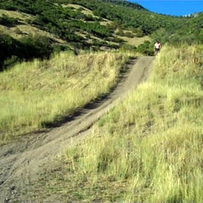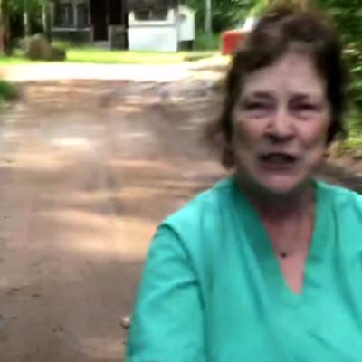 Deer named Daisy attacks heavy man by a dirt road. The man screams.