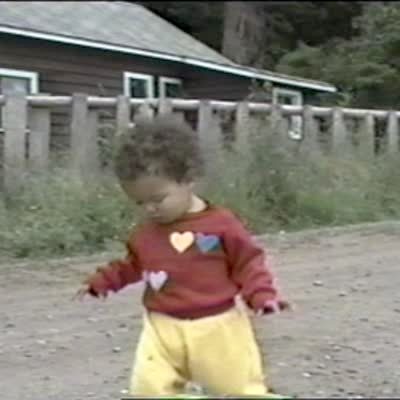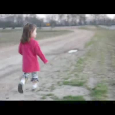 Kid (girl) walks into camera, hits lens, makes weird face.