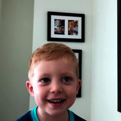 A woman asks a young boy for help with the dishes and he tells her "You're 40 and I'm 4, so I think you're old enough to do it by yourself... I believe in you" in the dining-room. Kids say.