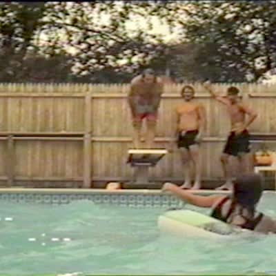 Teen boy in a Speedo practices diving, he does a backflip dive off the board and belly flops. Short clip, no tails.