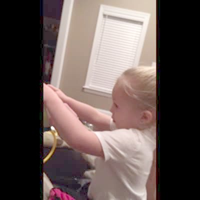 Two girls are playing doctor/ hospital with their dad and one girl pulls a big ball of lint out of man's belly button with plastic pliers. gross