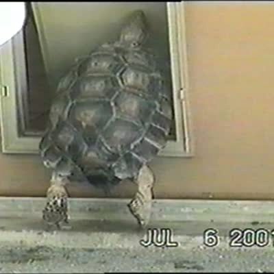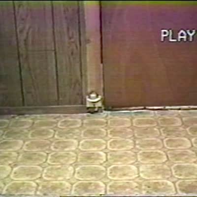 Baby deer comes into the house through the doggie door. Deer slides a bit on the tile floor & walks off-camera. Odd.