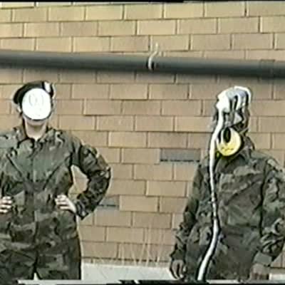AA -- Pour Milk: 2 Army personnel pour milk by doing pushups, sit-ups, jumping jacks, flips, etc.